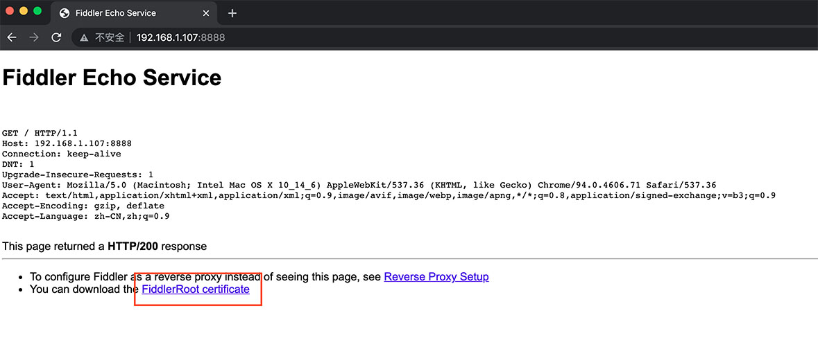 然后用浏览器打开对应的URL:192.168.1.107:8888,点击下载证书,安装证书的时候,安装到受信任的根证书机构