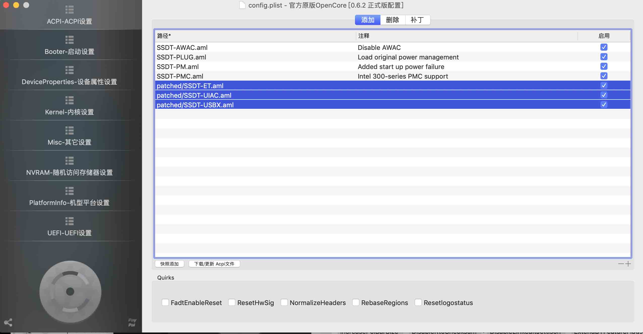 另外三个是SSDT-XXXX.aml,放入OC下的ACPI里的pacthed文件夹。